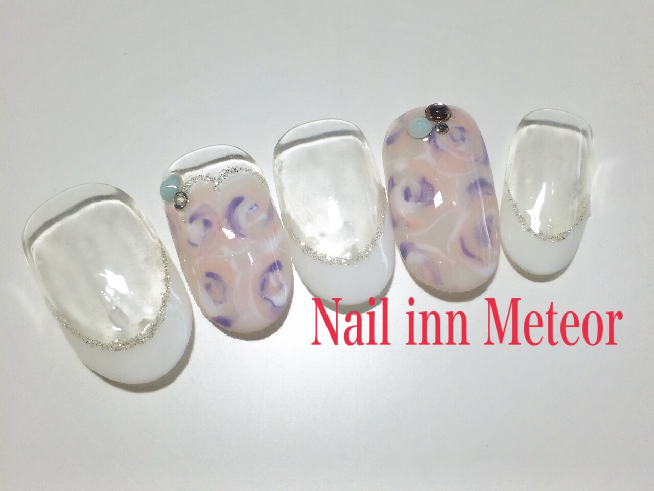 逆フレンチで、ふんわりカラフルベースとして花柄を入れた♡